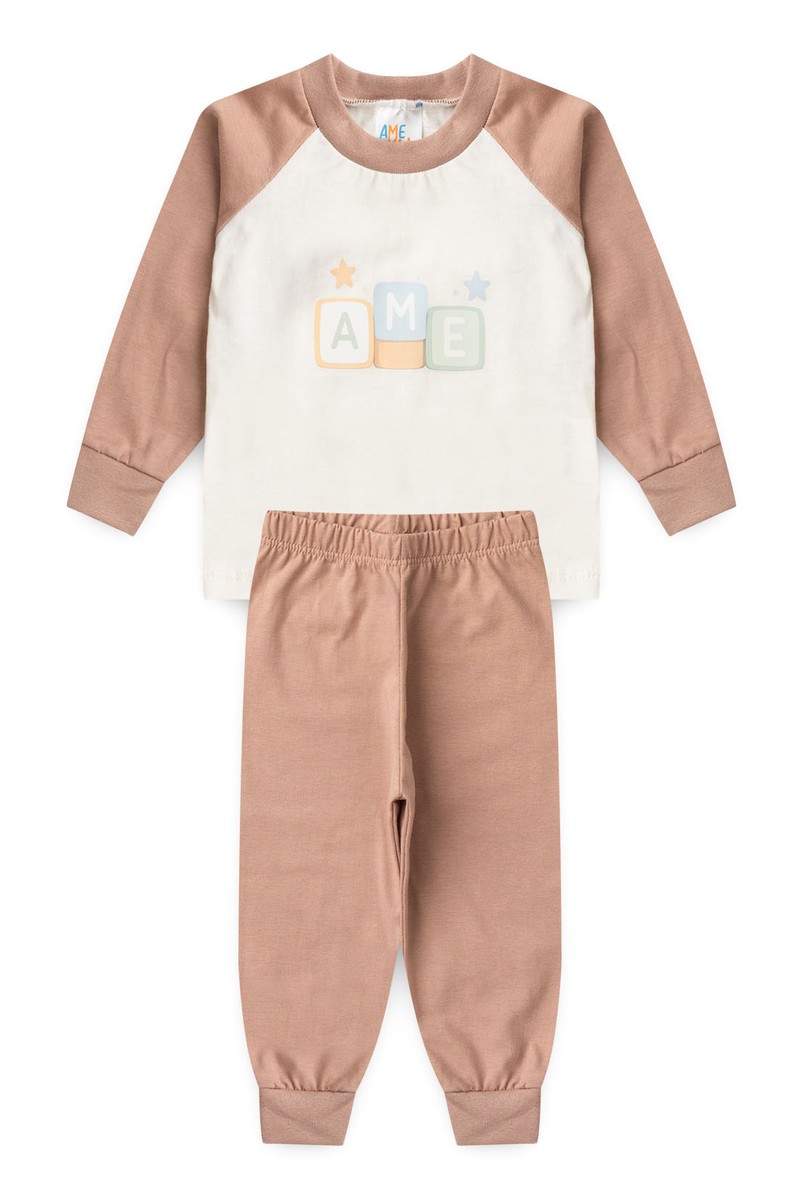 Conjunto Pijama Bebê Meia Estação Blusa e Calça - Ame Marrom - Ame Kids